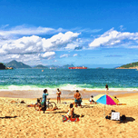 For a beach thats a little more local you can try Praia Vermelha Red Beach in Rio. Its near the tram to get to Pão de Açúcar Sugarloaf Mountain.